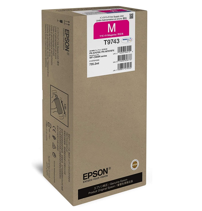 Mô tả chi tiết Hộp mực đỏ Epson C13T974300 Magenta Ink Pack – Dung lượng cao là mực in chính hãng Epson, được thiết kế đặc biệt cho máy in WorkForce Pro WF-C869R. Với dung tích lớn 735,2 ml, hộp mực mang lại năng suất in vượt trội, đáp ứng nhu cầu in khối lượng cao nhưng vẫn đảm bảo chất lượng màu sắc ổn định. Công nghệ mực pigment DURABrite Pro giúp màu đỏ rực rỡ, tươi sáng, chống lem, kháng nước và bền màu theo thời gian. Đây là lựa chọn tối ưu cho các doanh nghiệp, văn phòng lớn và đơn vị in ấn chuyên nghiệp, nơi cần duy trì hiệu suất in ổn định với chi phí hợp lý. Thông số kỹ thuật Thông số kỹ thuật Thương hiệu Epson Dung lượng 735 ml/túi Màu sắc Hồng (Magenta) Máy in tương thích Epson WorkForce Pro WF-C869R Chất lượng bản in Sắc nét, không lem nhòe Tiêu chuẩn đo lường ISO/IEC 24712 (độ phủ chuẩn 5%) Bảo hành Chính hãng Loại mực in Inkjet Pigment Hộp mực đỏ Epson C13T974300 Magenta Ink Pack – Dung lượng cao 735 ml, chính hãng cho WF-C869R SKU: C13T974300 Epson 735 ml/túi Inkjet Pigment Epson WorkForce Pro WF-C869R Sắc nét, không lem nhòe 11.143.000₫ (Bao gồm VAT ) Cái Hộp mực đỏ Epson C13T974300 Magenta Ink Pack – Dung lượng cao 735 ml, chính hãng cho WF-C869R với giá 11.143.000₫, số lượng 1. Đặt hàng Ưa thích So sánh Câu hỏi? Email Tư vấn khách hàng Nguyen Van A Hotline/Zalo: 0123456789 Email: email@gmail.com Nguyen Van B Hotline/Zalo: 0123456789 Email: email@gmail.com Điểm nổi bật Dung lượng cao 735 ml: năng suất in nhiều hơn, giảm tần suất thay mực. Mực chính hãng Epson: đảm bảo chất lượng và độ tương thích hoàn hảo. Công nghệ DURABrite Pro: mực pigment bền màu, kháng nước, chống lem. Màu đỏ rực rỡ, trung thực: in ấn tài liệu, biểu đồ, hình ảnh màu sắc chính xác. Tiết kiệm chi phí in ấn: chi phí trên mỗi bản in thấp, phù hợp in khối lượng lớn.